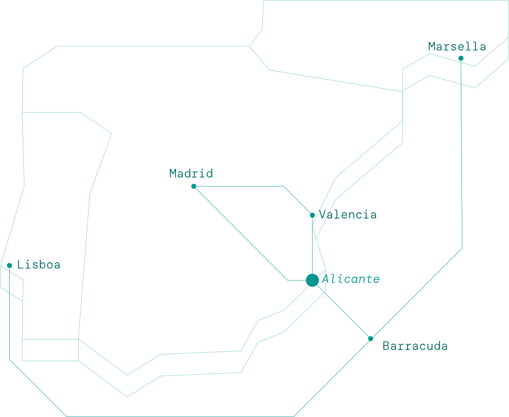 Gracias a una ubicación estratégica en la costa mediterránea de Alicante con conectividad a los principales nodos nacionales (Valencia y Madrid) a través de un diseño de backhaul redundante y con conectividad submarina a Marsella y Lisboa, los dos principales hubs europeos, permite a las empresas operadoras, entidades financieras y órganos gubernamentales nacional y europeos utilizar un enrutamiento directo, eliminar puntos críticos de fallo y evitar los puntos de congestión que en existen en la actualidad.